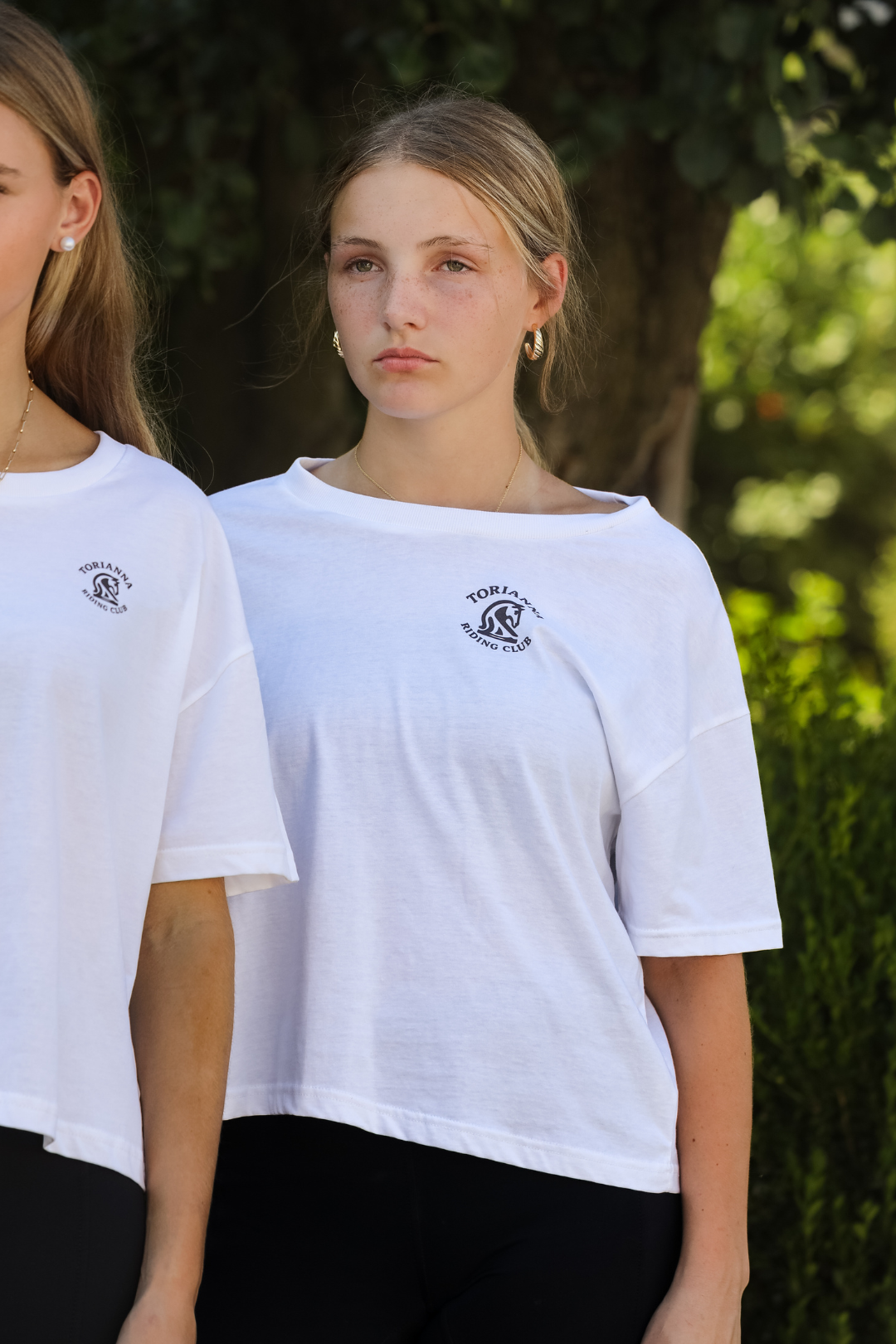 Saddle up in effortless style with the Torianna Riding Club Tee, featuring a foxy pinup equestrian on the back and the Torianna Riding Club emblem on the chest.